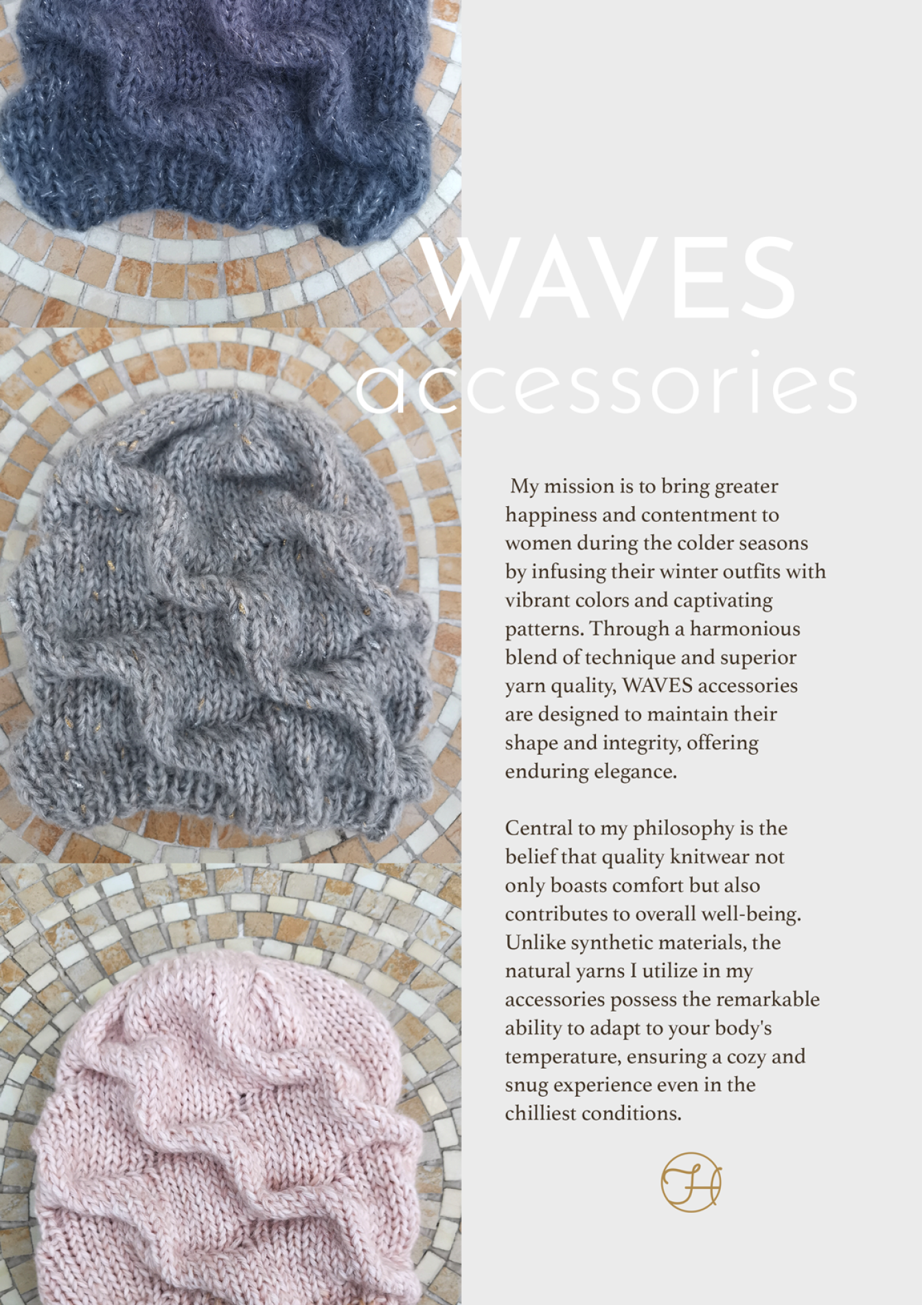 I've created and developed the pattern of the WAVES myself. This pattern is both beautiful and functional, providing comfort and style to anyone who wears it.